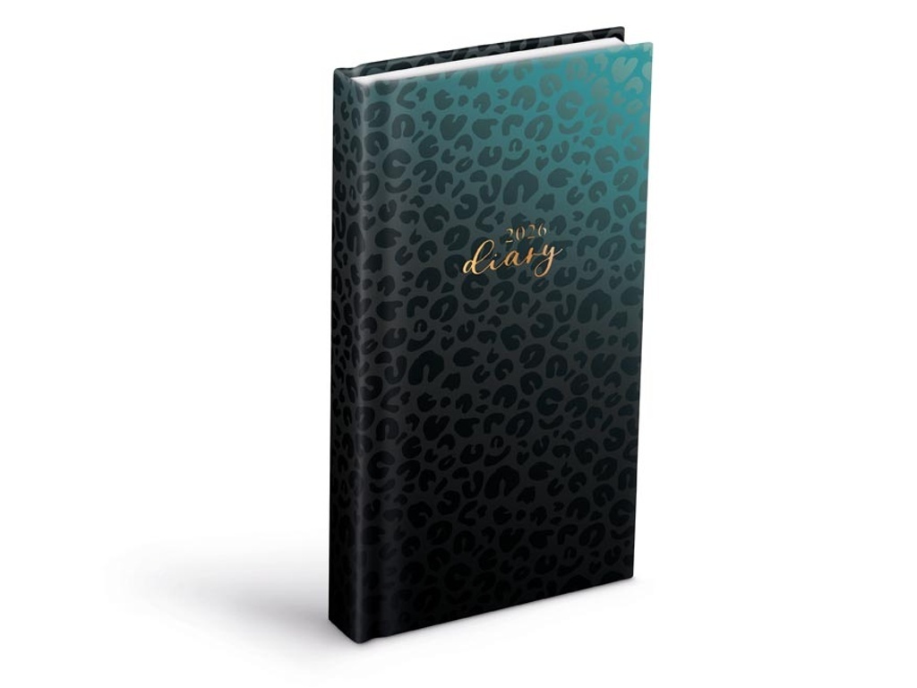 Když chcete mít všechno pod kontrolou! Denní diář 2026 s výrazným zvířecím vzorem v elegantní černé na smaragdově zeleném přechodu je tím pravým doplňkem pro ty, kdo milují styl i řád. Moderní vzhled doplňuje zlatý nápis „diary 2026“, který dodává obálce nádech luxusu. Matné lamino s parciálním ...