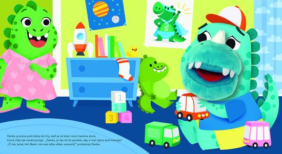 Kniha s veľkou maňuškou: Dinosaurík Danko už má byť dávno v posteli, ale vôbec sa ešte necíti unavený. Snaží sa odviesť reč na niečo iné, len aby mamička zabudla na spánok. Podarí sa jej napokon malého huncúta dostať pod perinu?