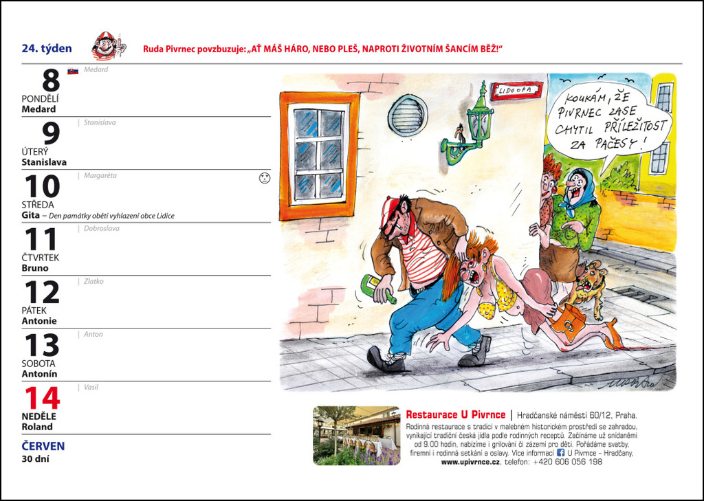 Poprvé vyšel kalendář pro rok 1993, nyní vychází už 34. v řadě, přesto stále náleží k nejprodávanějším titulům na knižním trhu. Nezapomeňte si včas opatřit průvodce rokem 2026, který vám pomůže načerpat energii a přinese dobrou náladu v každém dni díky kresleným vtipům autora Petra Urbana a jeho kreslené postavě Rudy Pivrnce.