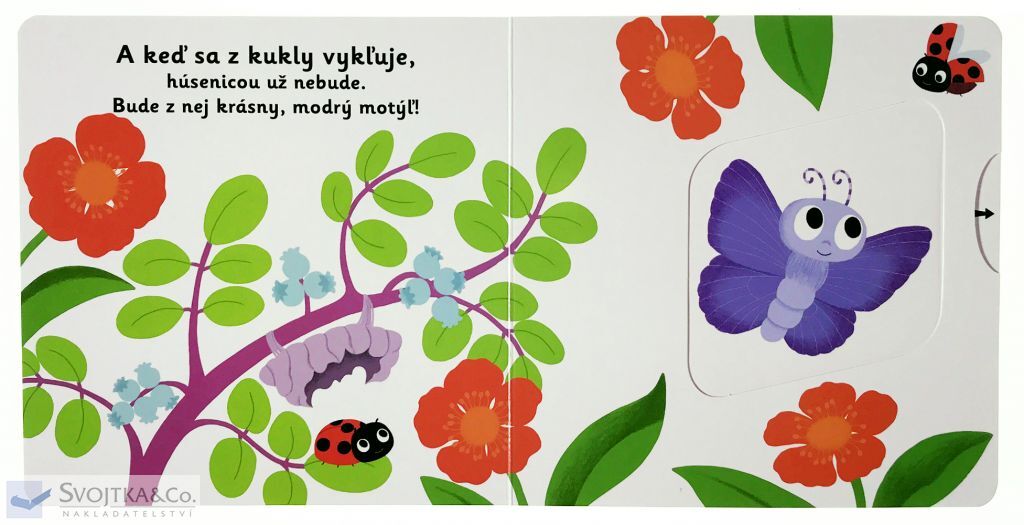 A keď sa z kukly vykľuje, húsenicou už nebude. Objavovať svet s týmto leporelom pre najmenšie deti od jedného roka je také zábavné! Pevné stránky s pohyblivými prvkami precvičia aj jemnú motoriku. Stačí len vložiť prštek do správneho otvoru, zľahka vysunúť, zatiahnuť alebo otočiť, a hneď bude váš malý objaviteľ poznať odpovede.
