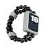 Oboustranné dřevěné hodinky s obrázkem digitálních a ručičkových hodin. Navlečeno na gumičce.
