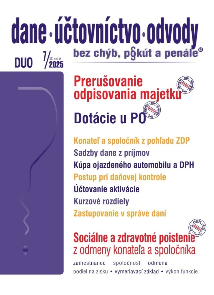 Inštitút prerušenia odpisovania majetku možno považovať za nástroj optimalizácie základu dane z príjmov. O prerušení odpisovania rozhoduje v zásade daňovník sám až na zákonom taxatívne vymenované situácie, ktoré sú osobitne upravené. Legislatívna úprava prerušenia odpisovania je obsiahnutá v zákone o dani z príjmov. Ak sa daňovník rozhodne odpisovanie prerušiť, v nasledujúcom zdaňovacom období pokračuje v odpisovaní tak, ako keby nebolo prerušené. V tomto zdaňovacom období môže uplatniť ako daňový výdavok len odpis pripadajúci na jedno zdaňovacie obdobie. Je možné v zdaňovacom období kumulovať odpisy za viac rokov? Stráca daňovník prerušením odpisovania nárok na uplatnenie odpisov do daňových výdavkov? Predlžuje dobu odpisovania majetku prerušenie odpisovania o dobu prerušenia? Odpovede sa dočítate v tomto mesačníku.