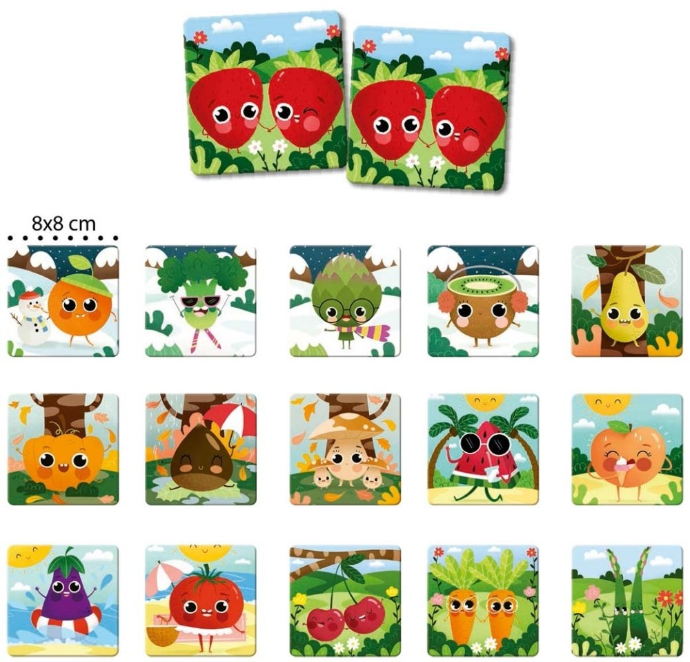 Zábavná hra, která učí zdravě jíst a pomůže životnímu prostředí výběrem sezónních potravin. Dílky obsahují ilustrovaná pozadí, která dětem ukazují, které roční období je pro konzumaci jednotlivých potravin nejlepší. Obsah: 32 karet, návod. Rozměr kartičky 80 x 80 mm. Rozvíjí a podporuje: ...