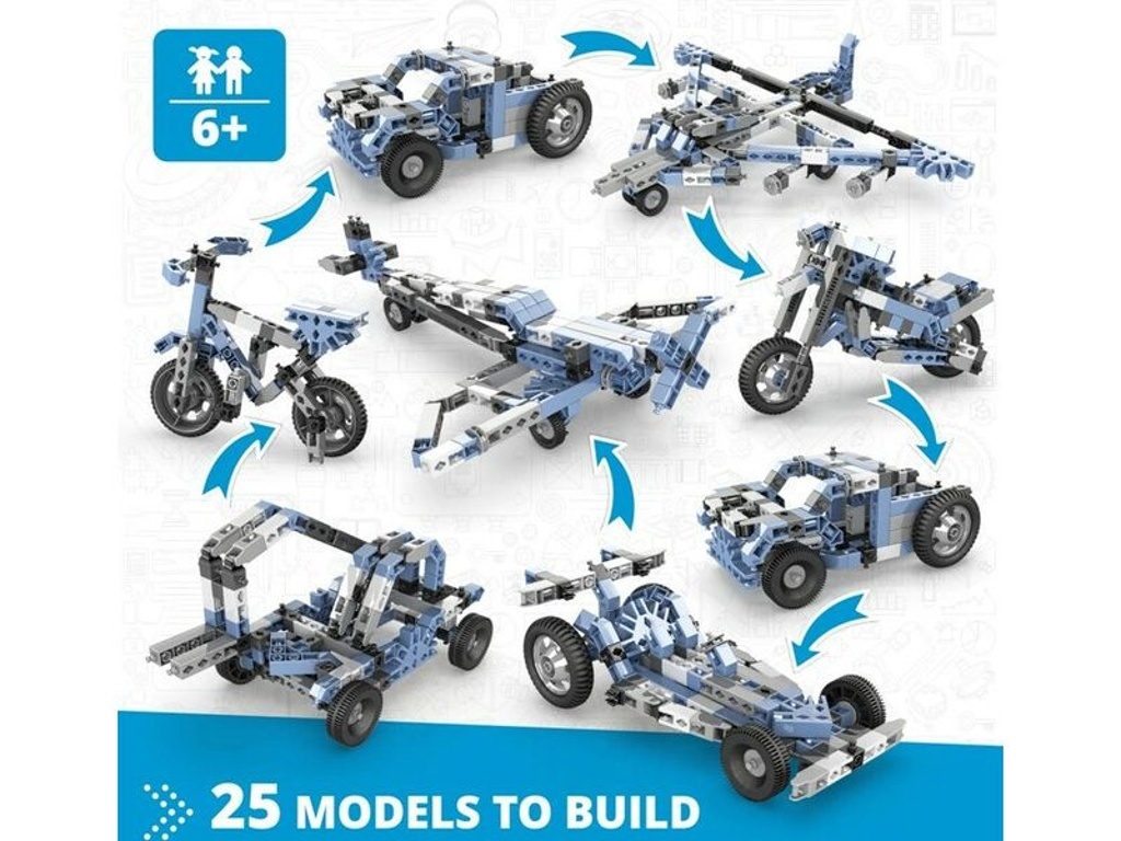 Stavebnice řady Engino Creative Builder podporují tvořivost a manuální zručnost dětí. Umožňují snadno a rychle přetvářet jeden model na druhý. Dle přiloženého návodu a mobilní aplikace krok po kroku snadno vytvoříte 25 různých modelů. Interaktivní aplikace Engino kidCAD® zobrazí modely ve 3D, které si můžete libovolně otáčet, prohlížet a upravovat. Kompatibilní s ostatními druhy stavebnic Engino. Vhodné od 6 let, vyrobeno na Kypru EU.