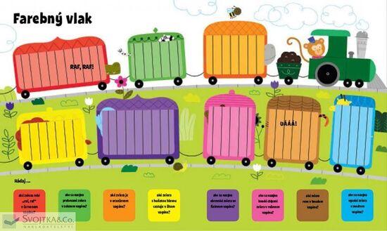 Leporelo pre najmenších s otváracími okienkami. Otvorte okienka a naučte svoje dieťa základné farby, počítať veci, dávať ich dohromady, počítať do 5 a veľa ďalšieho. Aké sú základné farby? Pozri sa pod okienko! Odklop okienko a pozri sa, kto sa vezie v ružovom vagóne farebného vláčika! Pozri sa za ...