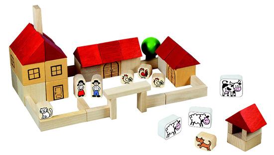 Stavebnice obsahuje 100 ks dřevěných dílků s potiskem v různých tvarech a velikostech.