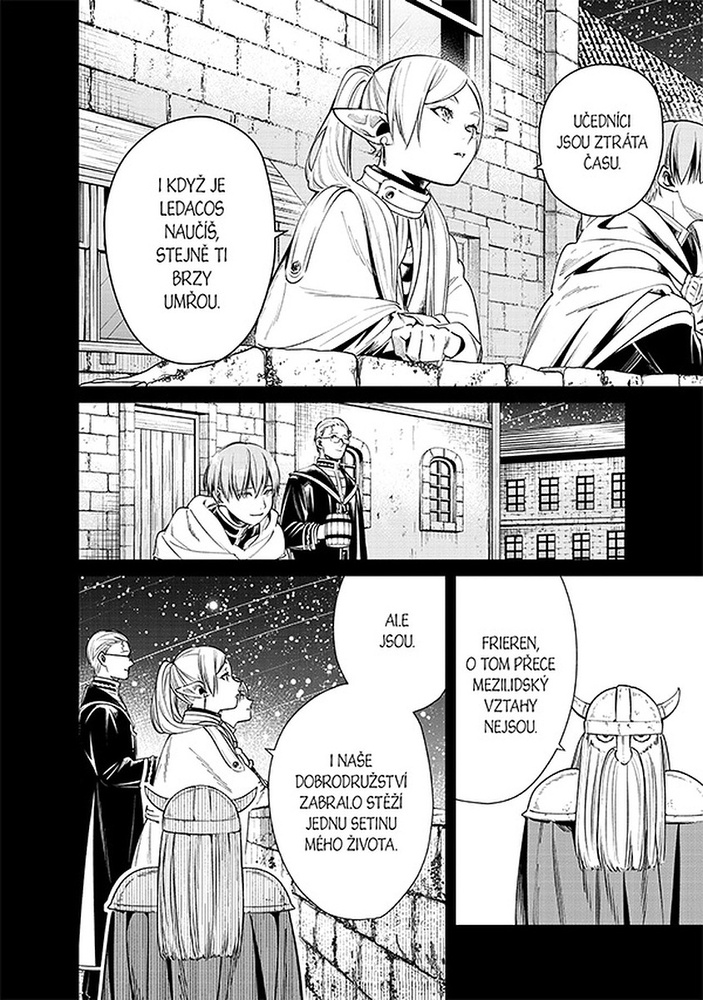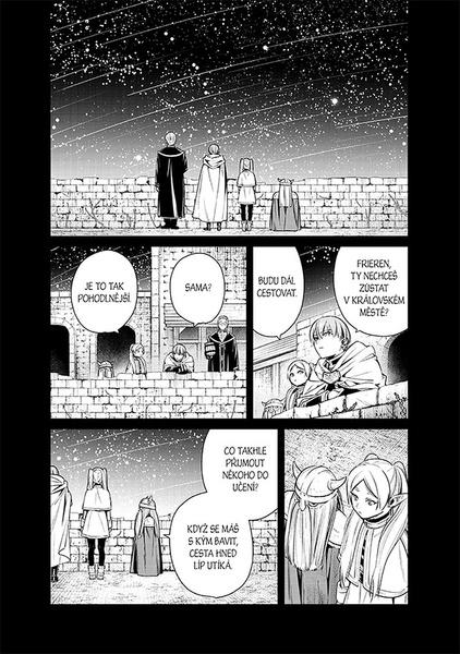 Frieren se svou učednicí Fern po několika letech putování poprvé obrací své kroky k jasnému cíli. Tím je Ende, krajina na dalekém severu, kde údajně odpočívají duše padlých hrdinů – a kde Frierenina družina kdysi svedla vítězný boj s Králem démonů. Přidává se k nim Stark, mladý válečník, který se svému umění učil u samotného Eisena.