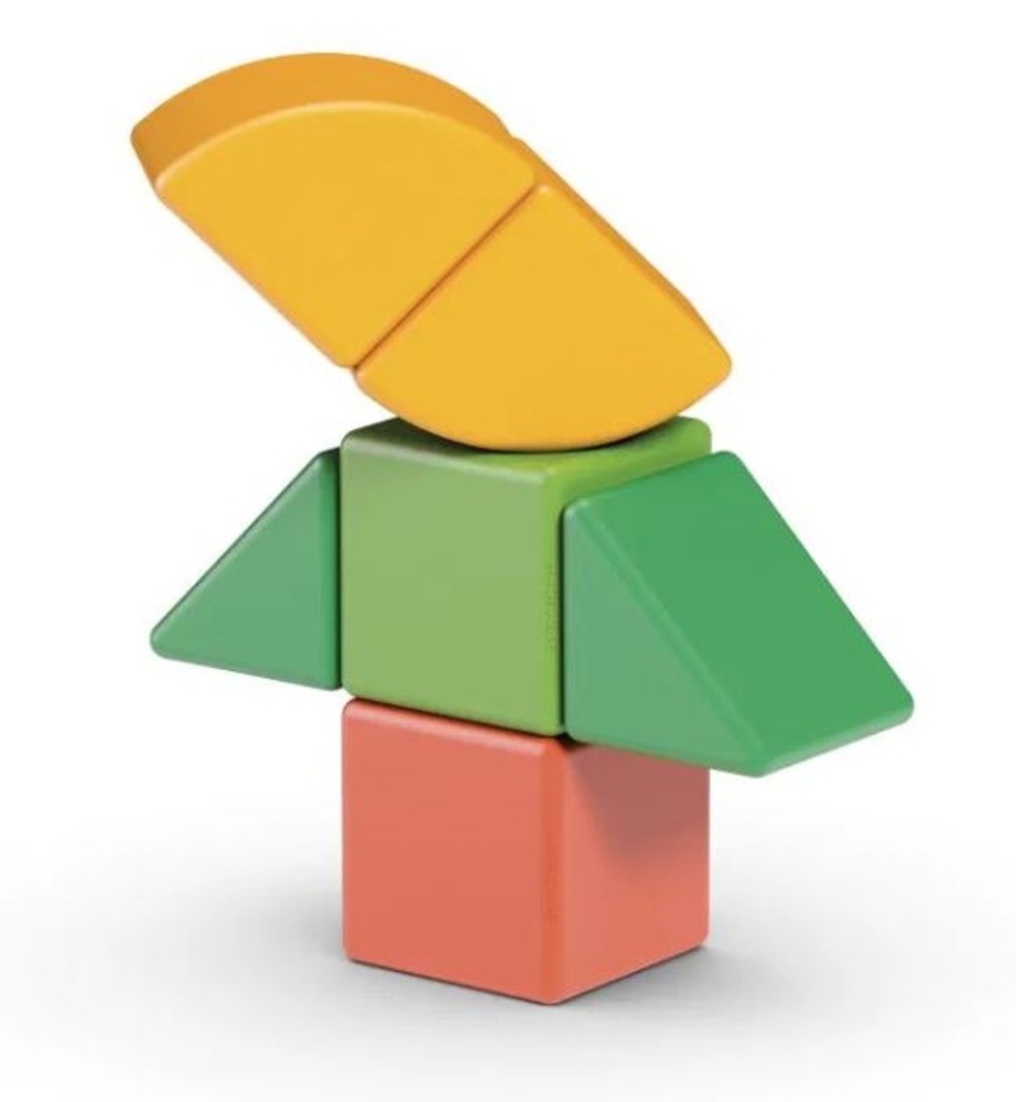 Kromě magnetických krychliček jsou součástí této sady také další dva magnetické tvary. Obsahuje 6 dílků. Vhodné od 1 roku.