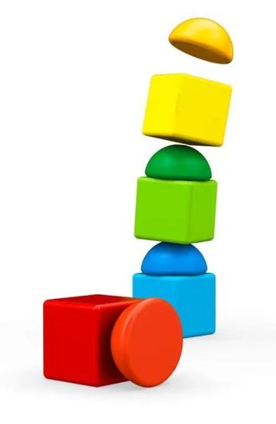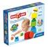 Stavění věží baví i malá miminka. Obsahuje čtyři magnetické polokoule a čtyři magnetické krychličky v kombinaci osmi barev. Vhodné od 1 roku.