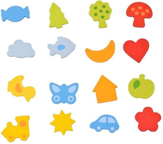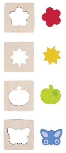 Hmatová hra pro rozvoj jemné motoriky a rozpoznávání tvarů. Hra je vyrobena ze dřeva, 16 rámečků z přírodního dřeva (5,9 x 5,9 cm) a 16 barevných vyřezávaných obrázků, hra stimuluje hmat a smyslové vjemy, rámečky se rozdělí mezi hráče a poskládají na stůl, dílky ve tvaru předmětů zůstanou v pytlíku ...