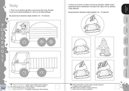 Najkompletnejší zborník testovacích úloh pre predškolákov, ktorý pripravili profesionálni pedagogickí pracovníci a psychológovia. Prostredníctvom týchto testov ľahko zistíte úroveň rozvoja svojho dieťaťa. Testy vám navyše umožnia zosumarizovať všetko, čo sa vaše troj- až štvorročné dieťa dosiaľ naučilo, a pripraviť ho na nasledujúcu etapu, v ktorej ho čakajú zložitejšie úlohy. Ak testované dieťa nesplnilo správne dostatočný počet úloh, nebuďte zarmútení či rozladení. V tejto knihe na vás čakajú i doplňujúce úlohy, ktoré pomôžu vášmu dieťaťu zdokonaliť svoje schopnosti.