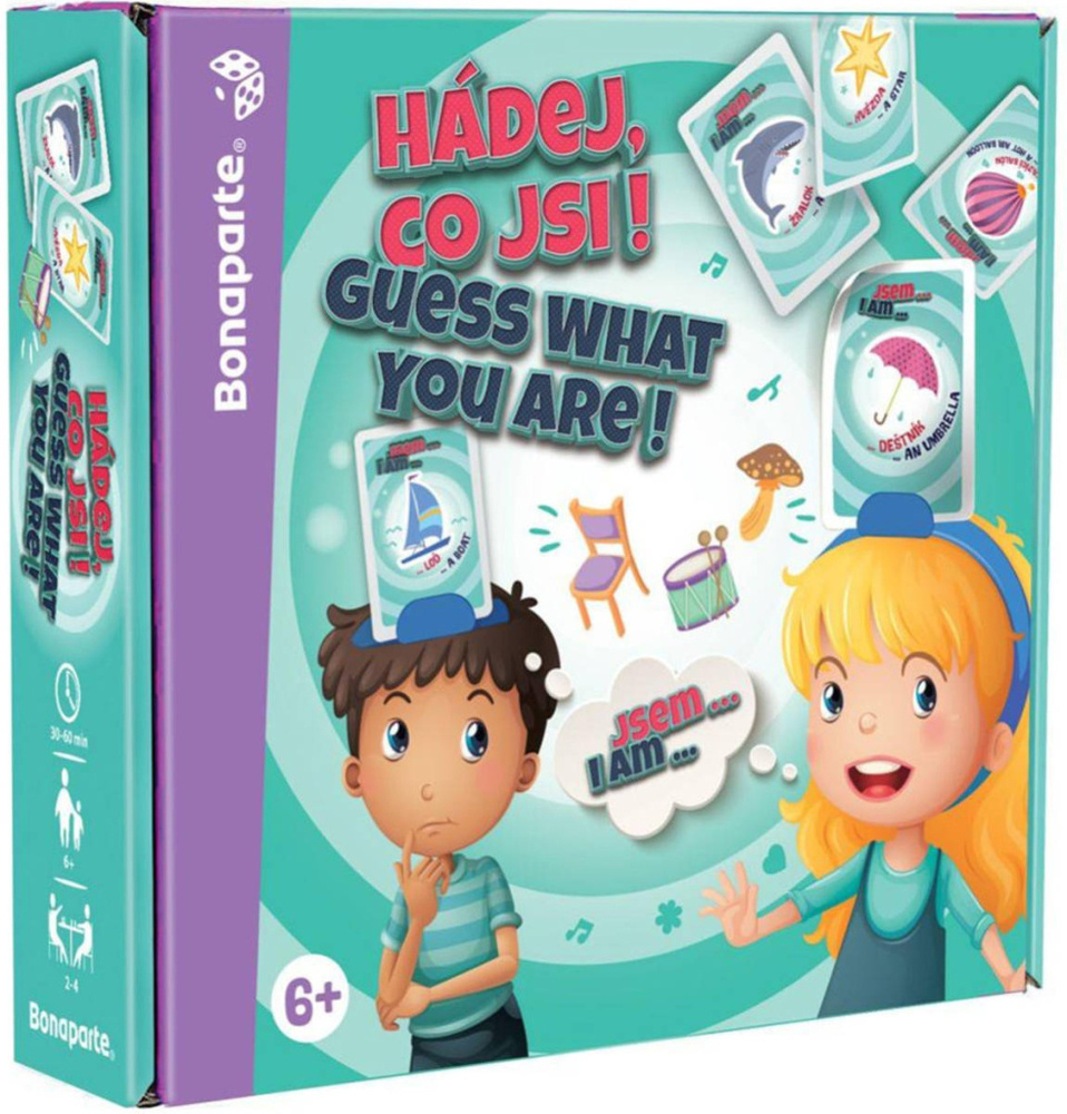 "Zábavná společenská hra pro celou rodinu. Hra, která zaručeně rozesměje celou rodinu nebo partu přátel. Veselá hádací hra, při které si hráči nasazují čelenku s kartičkou a snaží se pomocí otázek uhodnout, kým nebo čím jsou. Formou hry si hráči osvojí také 80 anglických slovíček. Nasaď si čelenku, ...