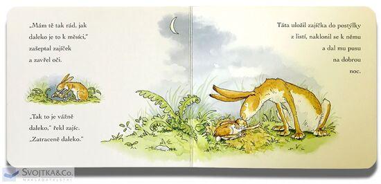 Zajíček měl už dávno spát. Ale zatím měl pořád oči otevřené a držel se tatínkových dlouhých uší. „Hádej, jak tě mám rád,“ pošeptal mu. „Tak schválně!“ usmál se zajíc… Představte si, že máte někoho rádi moc a moc rádi! a chcete mu to říct. Jak to nejlíp udělat? Není to snadné. Jak to šlo zajíčkovi s ...