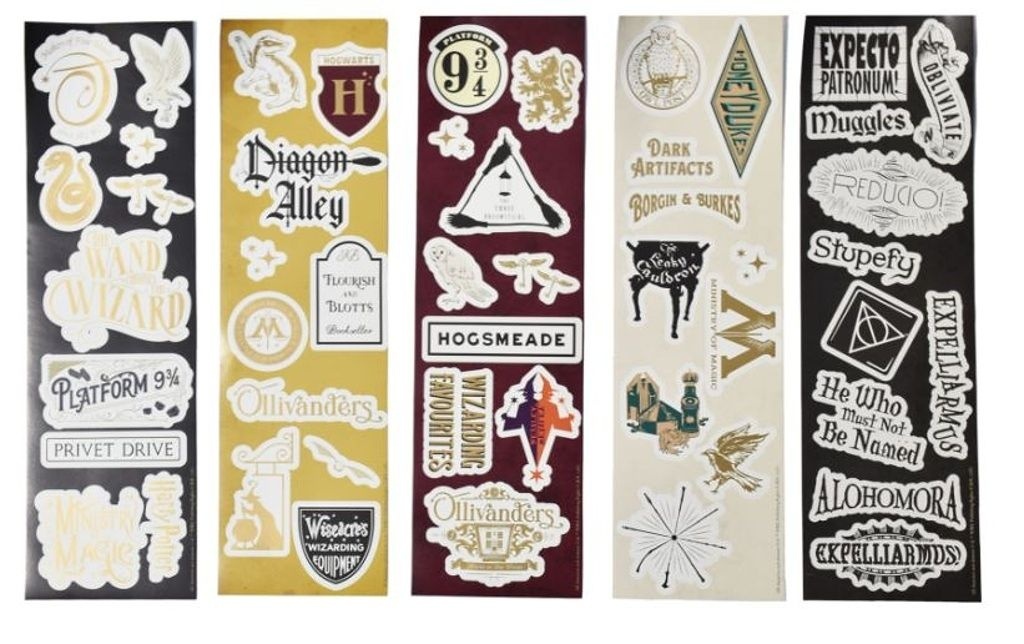 Set obsahuje 50 ks samolepek s motivem kouzelnického světa Harryho Pottera.