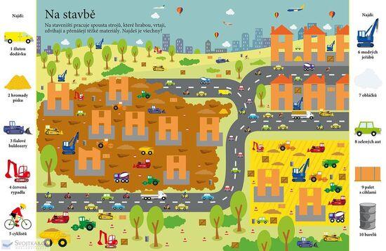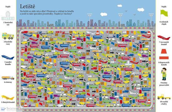 Najdeš jednoho pilota, dva kaskadéry, tři psy a čtyři neuvěřitelné létající bicykly? Dnes je velký letecký den, tak neváhej a pusť se do důkladného prozkoumávání obrázků. V tomto sešitu tě čeká mnoho scenérií a situací s tematikou nejrůznějších vozidel, které skýtají spoustu času zábavného hledání. Schválně, jak bystré máš smysly? Najdeš všechny předměty schované v obrázcích? Ve městě, v kempu, na nádraží, během automobilových závodů... Kdo a co všechno se schovává v těchto dopravních situacích? Objevuj rozmanité výjevy a zab