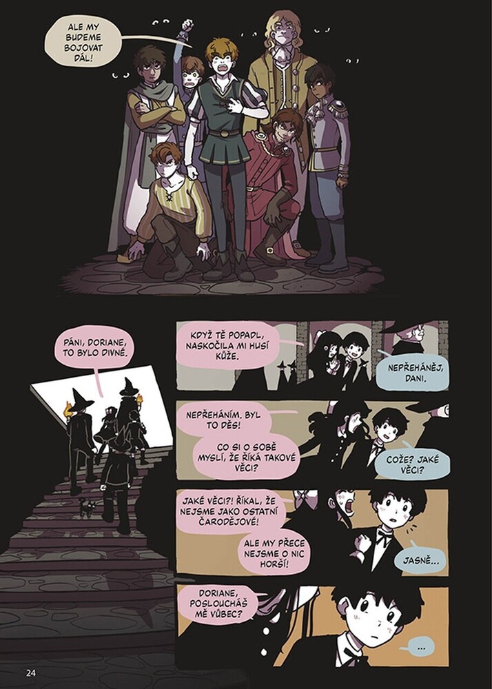 Pronásledují je mocné rodiny pátrající po králi čarodějů z tajemného proroctví i šlechta hledající zmizelé prince, a dvojčata tak nevědí, komu můžou věřit. Naštěstí na to nejsou sama: s pomocí místní princezny potížistky a učitele, který vidí do budoucnosti, třeba ještě zvládnou svá jména očistit... ale bude to stačit, aby sjednotila království rozervané svárem?