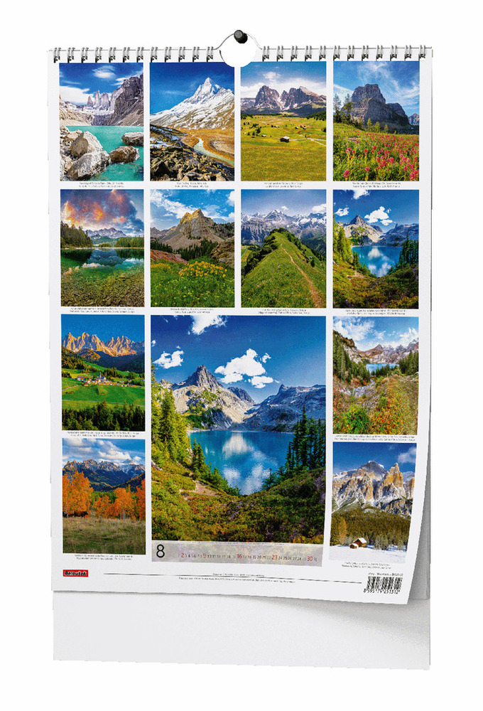 Nástěnný kalendář s obrázky známých hor z celého světa.