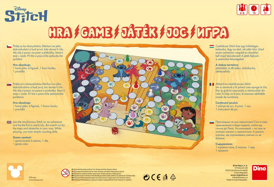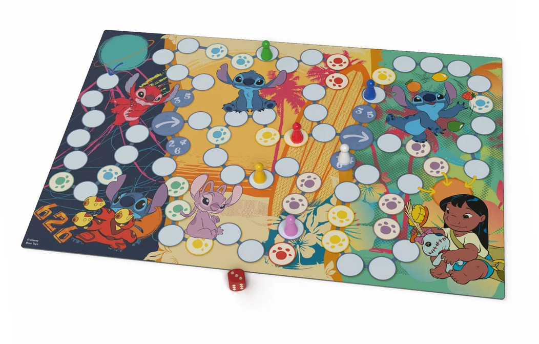 Zažijte dobrodružnou cestu s vašimi oblíbenými postavičkami Stitch a Angel v dětské hře pro 2–6 hráčů od 5 let.