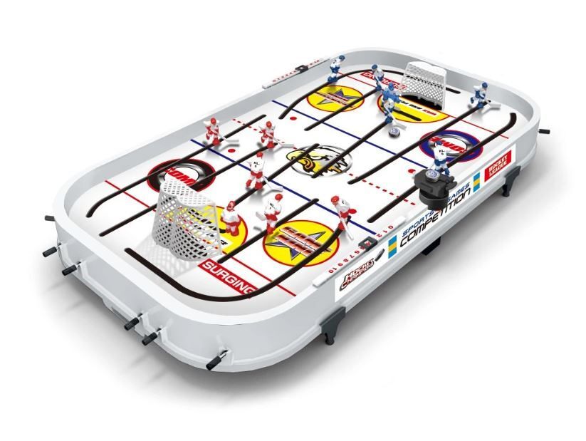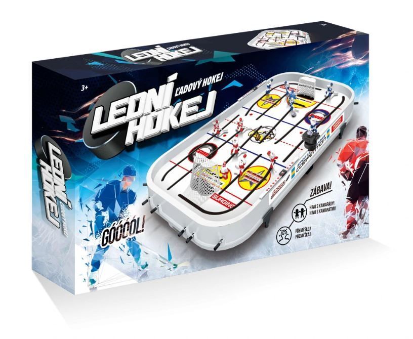 Užijte si napínavé zápasy přímo u vás doma! Stolní lední hokej je ideální hrou pro děti i dospělé. Snadné ovládání hráčů pomocí táhel, rychlý puk a soutěživá atmosféra zaručují hodiny zábavy. Skvělý způsob, jak rozvíjet postřeh, koordinaci a soutěživého ducha. Vhodné pro dva hráče.