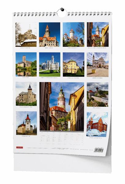 Nástěnný kalendář s obrázky hradů a zámků naší země.