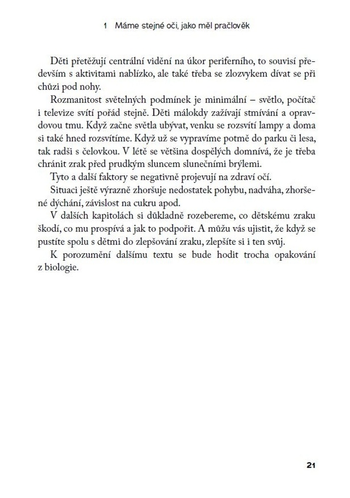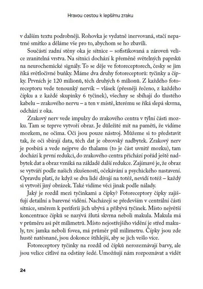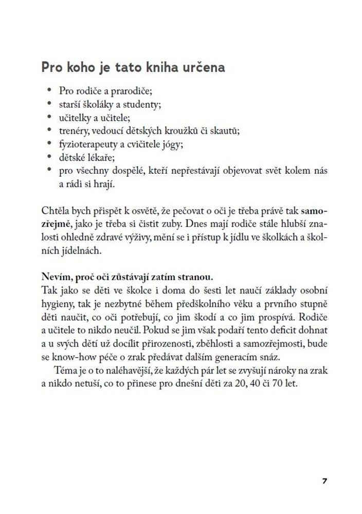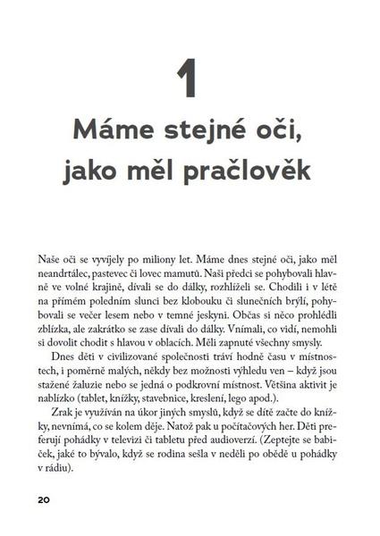 Kniha Hravou cestou k lepšímu zraku přináší srozumitelné návody, jak dětský zrak rozvíjet a při zrakových vadách i zlepšit. Nabízí cvičení a hry, které lze provozovat venku i ve třídě – pro rodiče, učitele, trenéry i vedoucí dětských kolektivů. Profitovat mohou i dospělí.