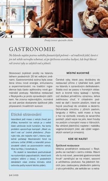 Díky praktickým radám se můžete bez obav vydat na cestu a objevovat zajímavosti a krásy Islandu. Dozvíte se, jak se na ostrov dostat, jak se zde přemisťovat a spoustu dalších užitečných informací. Poznáte severskou kuchyni a zjistíte, kam vyrazit za nákupy, zábavou i oddechem. Vyzkoušejte pečlivě vybrané restaurace a hotely.