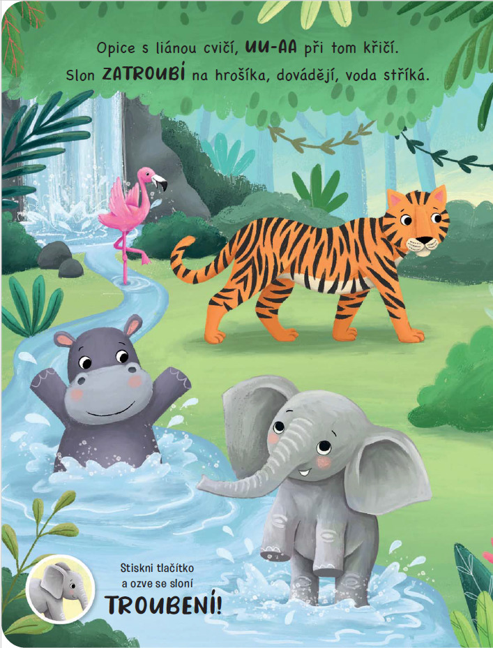 Jak troubí slon v džungli, jaké zvuky se ozývají na savaně nebo jak v oceánu zpívají velryby? Na to všechno dětem odpoví knížka Jak se baví zvířata s osmi zvukovými tlačítky, pomocí nichž si mohou hlasy zvířátek přehrát.