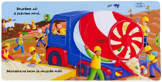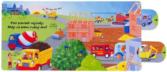 Leporelo je určeno pro děti od jednoho roku. Má pevné stránky s posuvnými a otočnými prvky, a tak si malý stavbař při prohlížení procvičí i jemnou motoriku.