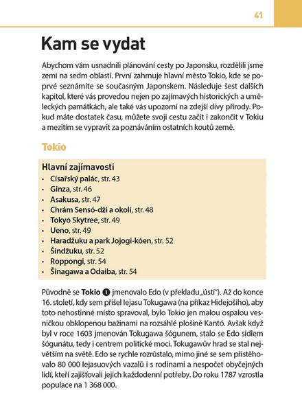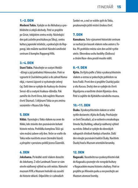 Nechte se inspirovat bezpočtem půvabných míst, která přímo vybízejí k návštěvě. V úvodu knihy najdete tři itineráře: první vás během dvanácti dní provede největšími a nejzajímavějšími městy v Japonsku. Díky druhému itineráři prozkoumáte významná historická místa v zemi. A třetí vám představí lázeňské město Hakone.
