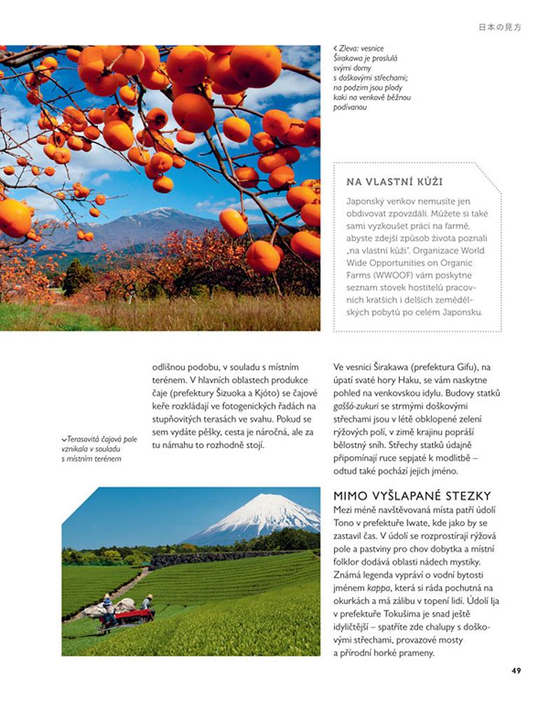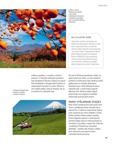 Tato kniha vám ukáže, proč se vydat na cestu do Japonska – ať již skutečnou, nebo pouze ve vašich představách. Nadčasové tradice se zde dokonale snoubí se všemi vymoženostmi moderní doby a s optimistickým výhledem do budoucna. Objevíte zde kaleidoskop zcela různorodých radostí – projdete se vyhlášenými zahradami, pokocháte se prchavou krásou třešňových květů, zúčastníte se rušné letní slavnosti, vychutnáte si rituální čajový obřad, zazpíváte si svou oblíbenou píseň při karaoke nebo se ponoříte do horkých pramenů onsen s výhledem na horu Fudži. Země vycházejícího slunce oplývá rozmanitou a malebnou krásou. Existuje bezpočet důvodů, proč se do této okouzlující země zamilovat.
