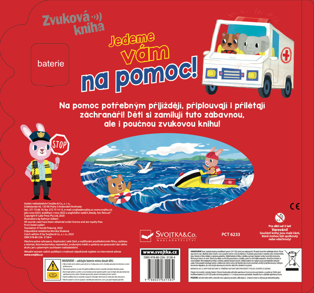 Co se to děje? Nebohá kočička uvízla na stromě, ale nebojte! Ochotní hasiči ji v bezpečí vrátí jejím majitelům. A co se to děje tamhle? Nezranil se někdo v horách? Tato interaktivní poučná zvuková kniha dětem na názorných situacích představí práci a úsilí hasičů, policistů a záchranářů. V krátkých, ale konkrétních vážných chvílích se děti dozvědí, co obnáší práce lidí, kteří pomáhají a chrání druhé. V knize děti naleznou 10 různých zvuků záchranářských prostředků, ale také i veselé a roztomilé ilustrace.