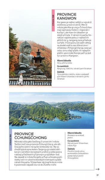Jižní Korea je v průvodci rozdělena na sedm oblastí: