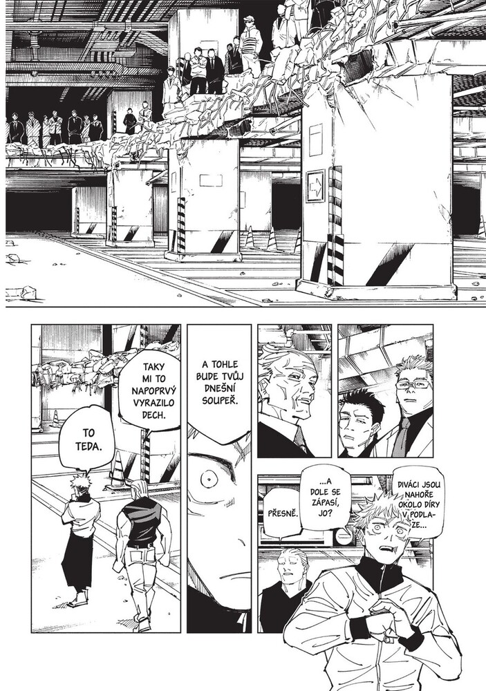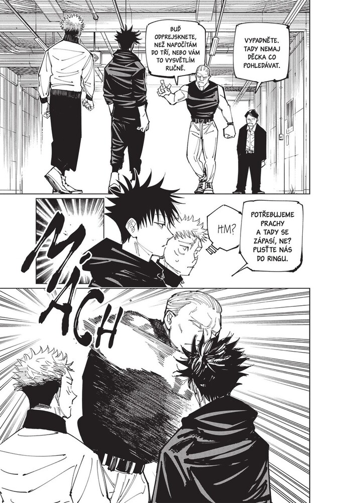 Itadori s Fušigurem se ve snaze o zvýšení svých šancí na zastavení smrtící Očistné řeže rozhodli požádat o pomoc Kindžiho Hakariho, dočasně vyloučeného studenta třetího ročníku. Ten je však zaneprázdněný něčím zcela jiným – provozováním tajného klubu rváčů! Aby si získal jeho pozornost, přihlásí ...