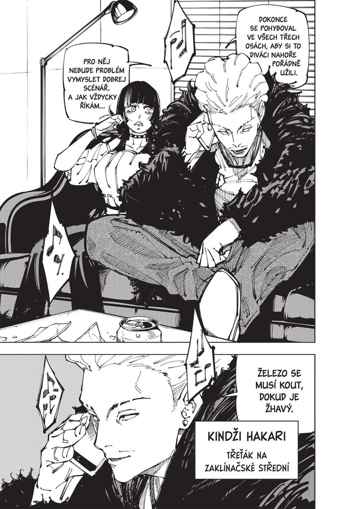 Itadori s Fušigurem se ve snaze o zvýšení svých šancí na zastavení smrtící Očistné řeže rozhodli požádat o pomoc Kindžiho Hakariho, dočasně vyloučeného studenta třetího ročníku. Ten je však zaneprázdněný něčím zcela jiným – provozováním tajného klubu rváčů!