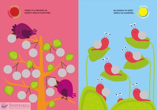 Haf, haf! Pejsek s míčky žongluje, myška nadšeně ho sleduje! Umíš nalepit míčky na správná místa? Žabka borůvky si nese, plnou náruč našla v lese. Zvládneš nalepit "borůvky" tam, kam patří? V této knížce najdou naši nejmenší plno jednoduchých aktivit a 140 samolepek, které jim pomohou naučit se ...