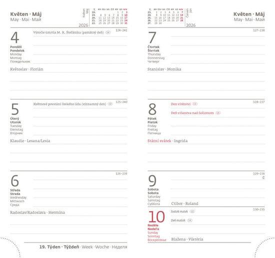 Formát diáře: 80 x 150 mm Rozsah diáře: 128 stran Kalendárium: týdenní kapesní Diář vyrobený za použití recyklovaných materiálů