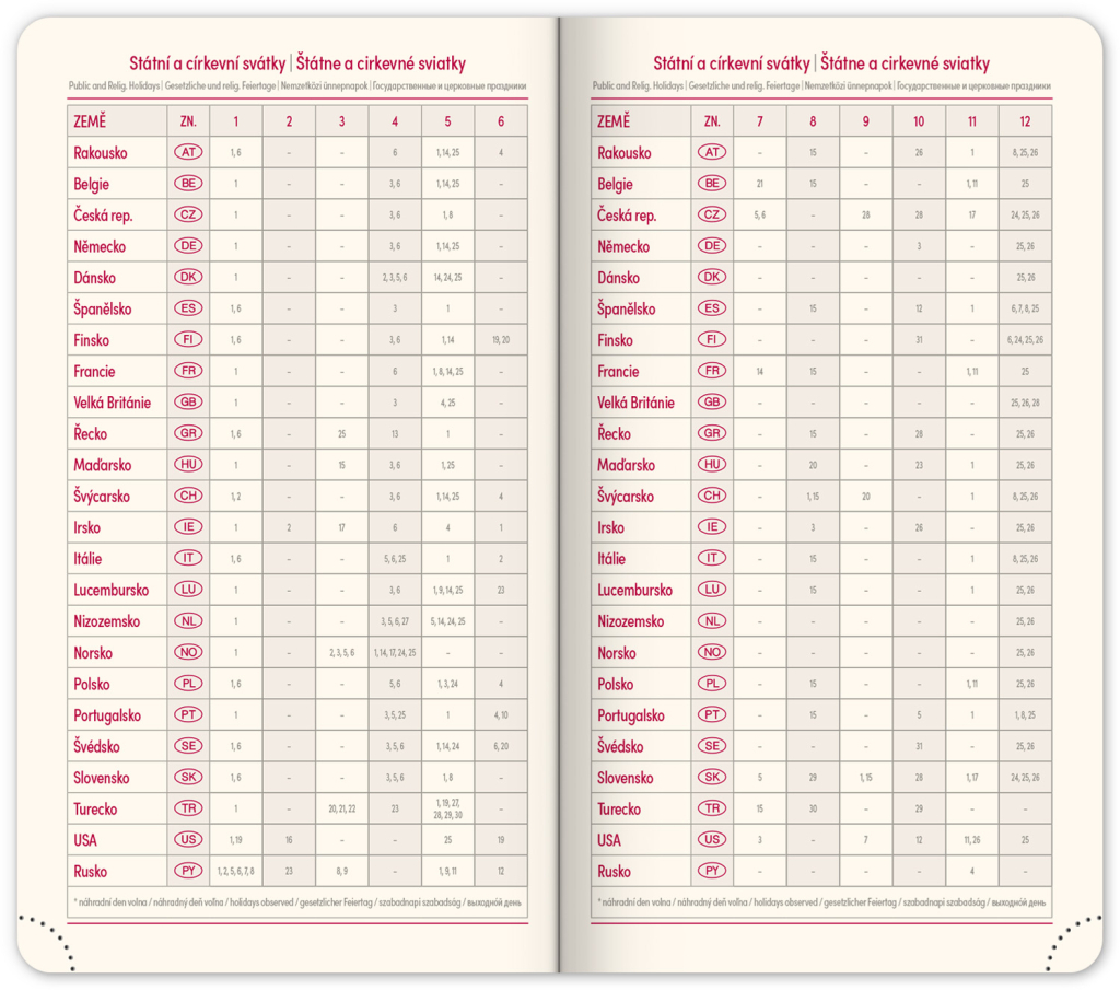 • svátky České a Slovenské republiky a mezinárodní svátky