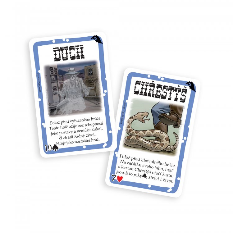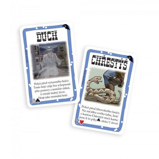 Rozšíření obsahuje 20 karet, z toho 5 karet nových postav a 15 akčních karet. Můžete se například těšit na akční kartu Tornádo, modrou kartu Ducha nebo na Poslední pivo!
