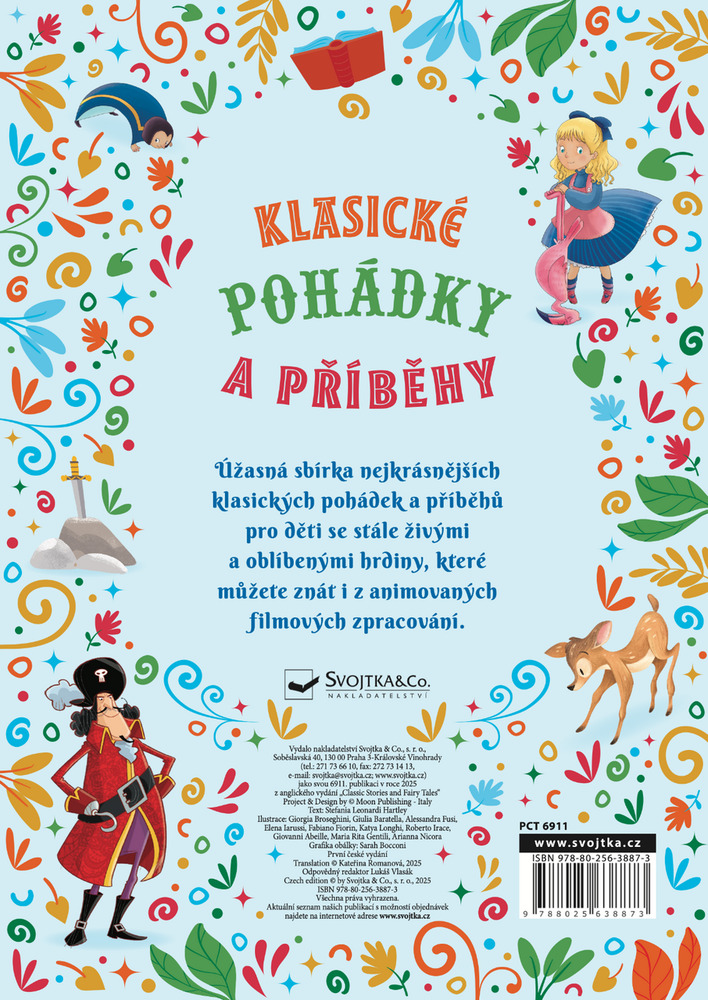 Objevte kouzelný svět nadčasových příběhů, které okouzlily generace dětí po celém světě. V této bohatě ilustrované sbírce klasických pohádek, známých též z animovaných filmových zpracování, se potkáte s neohroženým Petrem Panem, divokým Mauglím či veselým Pinocchiem. Nechybí ani odvážné dívčí hrdinky jako Sněhurka, Alenka nebo Dorotka z kouzelné země Oz. Kniha přináší nejen známé příběhy, ale i krásné ilustrace, které oživují oblíbené postavy, jež děti znají i z milovaných filmových pohádek. Je ideální ke společnému čtení před spaním, ale i pro první samostatné čtení malých školáčků – a jako taková je tato sbírka pokladem každé dětské knihovničky.