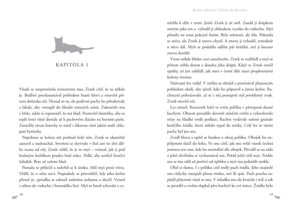 Čtyři klany divokých koček si odedávna dělí území lesa podle zákonů, které stanovili kdysi dávno jejich předkové. Kočkám Hromového klanu však nyní hrozí nebezpečí, neboť válečníci Stínových jsou den ode dne silnější... Do této nejistoty přichází obyčejný domácí kocourek Zrzek. Zpočátku se zdá, že mezi ostřílenými lesními bojovníky nemá šanci, záhy se ale ukazuje, že se mu vyrovná jen málokdo!
