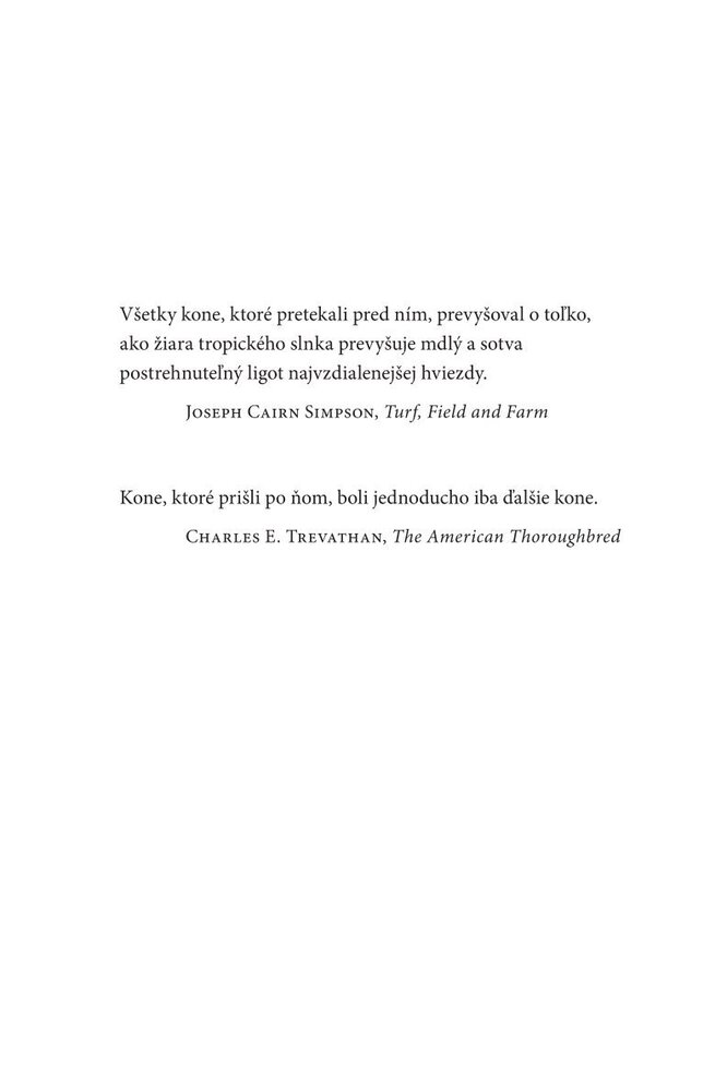 VEĽKÝ ROMÁN O VÁŠNI, NESLOBODE A STOPÁCH MINULOSTI, KTORÉ NEZMAZAL ČAS Kôň, nový román držiteľky Pulitzerovej ceny Geraldine Brooksovej, rozpráva o legendárnom plnokrvníkovi Lexingtonovi a o ľuďoch, ktorí s ním boli osudovo spätí. Na pozadí amerických dejín – od otroctva a občianskej vojny ...