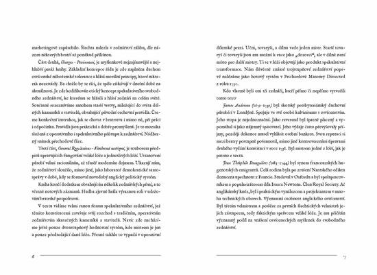 Český čtenář tak má poprvé možnost seznámit se s úplným zněním Andersonových konstitucí, z nichž byly dosud v češtině publikovány pouze vybrané části. Kniha potěší nejen zájemce o svobodné zednářství, ale i všechny, které zajímá doba osvícenství a formování moderní západní civilizace.