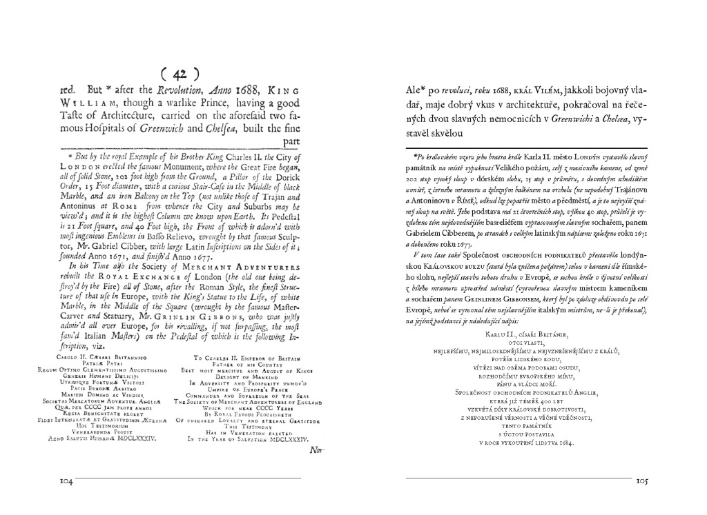 Kniha je koncipována jako zrcadlové vydání – na levé straně najdete reprint originálu, na pravé český překlad, který graficky odpovídá předloze. Text přeložil a předmluvou opatřil Pavel E. J. Gergel.