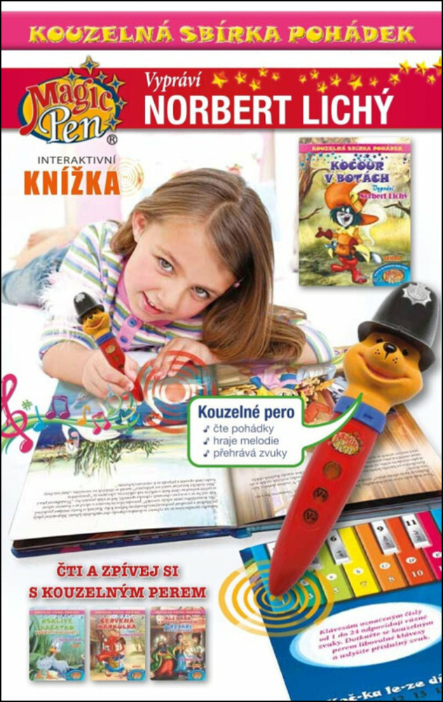 Díky interaktivnímu peru uslyšíte podmanivý hlas Norberta Lichého, který tuto pohádkovou sbírku knih namluvil. Objevujte nejen pohádkový příběh, ale i všechny skryté zvuky na stránkách této neobyčejné knihy!