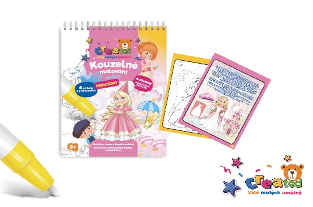Stačí jen voda a kouzlo začíná! S tímto kouzelným blokem se děti přenesou do pohádkového světa princezen, krásných šatů a zámků. Naplňte přiloženou kouzelnou tužku vodou a sledujte, jak se obrázky samy vybarvují – bez kapky nepořádku. Po vyschnutí barvy zmizí a malování může začít znovu. Obsahuje 4 příběhy o princeznách, 4 kouzelné obrázky k vybarvování vodou a 1 kouzelnou vodní tužku.