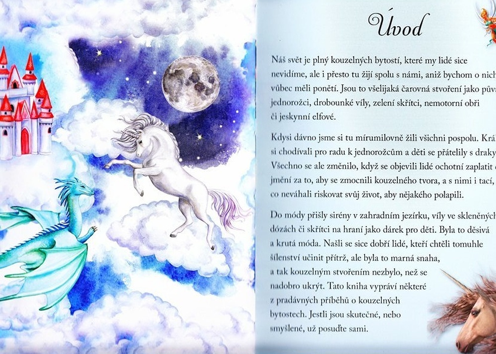 Kdysi dávno jsme si tu mírumilovně žili všichni pospolu. Králové si chodívali pro radu k jednorožcům a děti se přátelily s draky. Všechno se ale změnilo, když se objevili lidé ochotní zaplatit celé jmění za to, aby se zmocnili kouzelného tvora, a s nimi i tací, co neváhali riskovat svůj život, aby nějakého polapili. Našli se sice dobří lidé, kteří chtěli tomuhle šílenství učinit přítrž, ale byla to marná snaha, a tak kouzelným stvořením nezbylo, než se nadobro ukrýt.