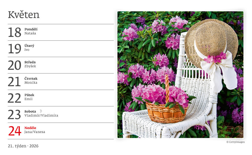 Formát kalendáře: 22,6 x 13,9 cm </br> Kalendárium: české týdenní řádkové </br> Počet stran kalendáře: 58 + 2 </br> Stojánek: se zámkem </br> Prostor pro přítisk: 22,6 x 3 cm