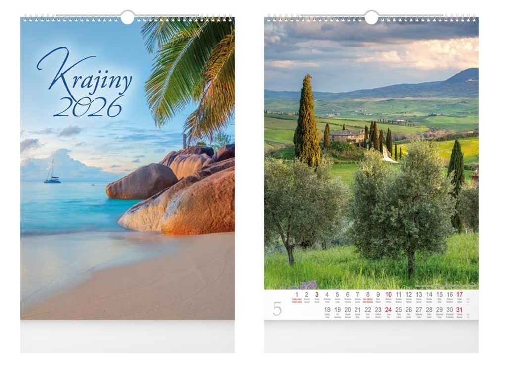 Ponořte se do krás přírody z celého světa! Každý měsíc vás tento kalendář na rok 2026 okouzlí dechberoucími snímky rozmanitých krajin – od divokých hor a jezer přes sluncem zalité pláže až po malebná údolí a zelené pláně. Inspirujte se, kam vyrazit za dobrodružstvím nebo odpočinkem, a nechte se unášet krásou přírody přímo z vašeho domova či kanceláře. Kalendář je nejen pastvou pro oči, ale také praktickým pomocníkem pro plánování každodenních událostí – pracovních i osobních. Spodní část kalendáře nabízí prostor pro případný dotisk firemního loga a vlastního textu – skvělý tip na originální dárek pro obchodní partnery, klienty či zaměstnance.
