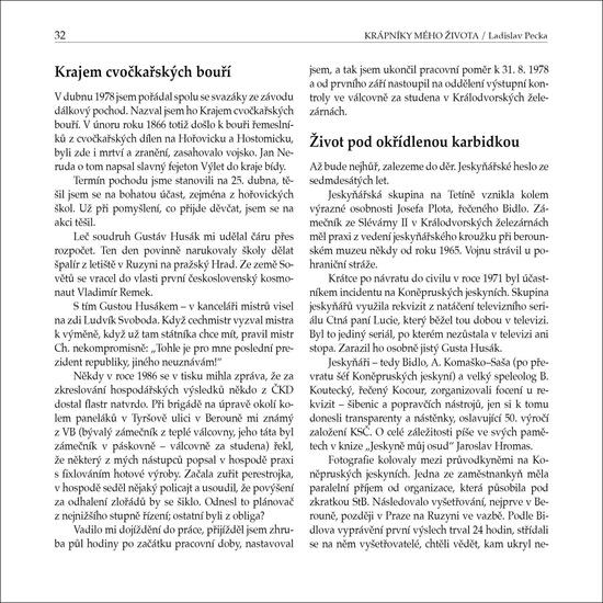 Rád bych, aby se moje nesnadno vznikající kniha stala svědectvím doby, kterou jsem prožil. Mnohé z toho je neopakovatelné (doufám). Tak jako krápníky jsou svědectvím přírodních dějů, tak by i tahle knížka měla být malým střípkem v obraze doby, kterou jsme prožili.