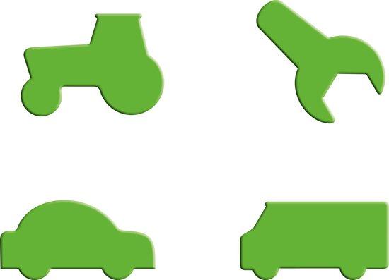 Čtyři dílky z dvanácti mají specifický tvar (traktor, auto, autobus, montážní klíč) a může sloužit pro malé děti zpočátku i jako vkládačka.